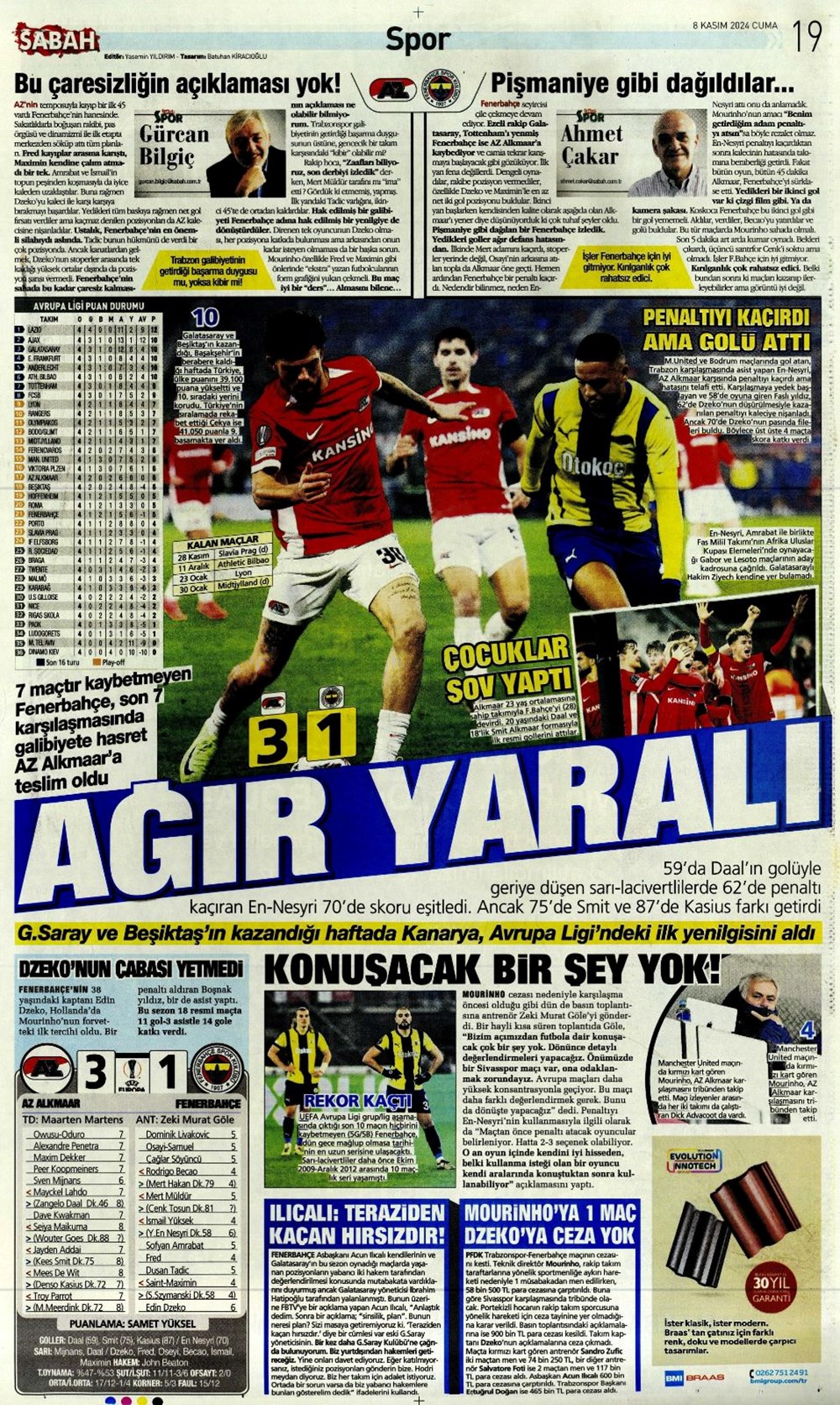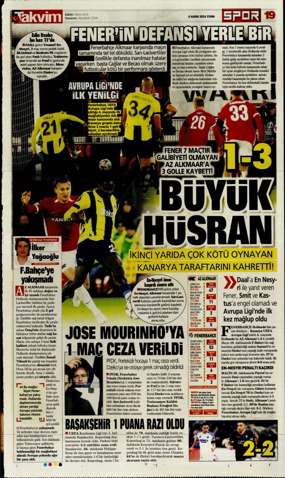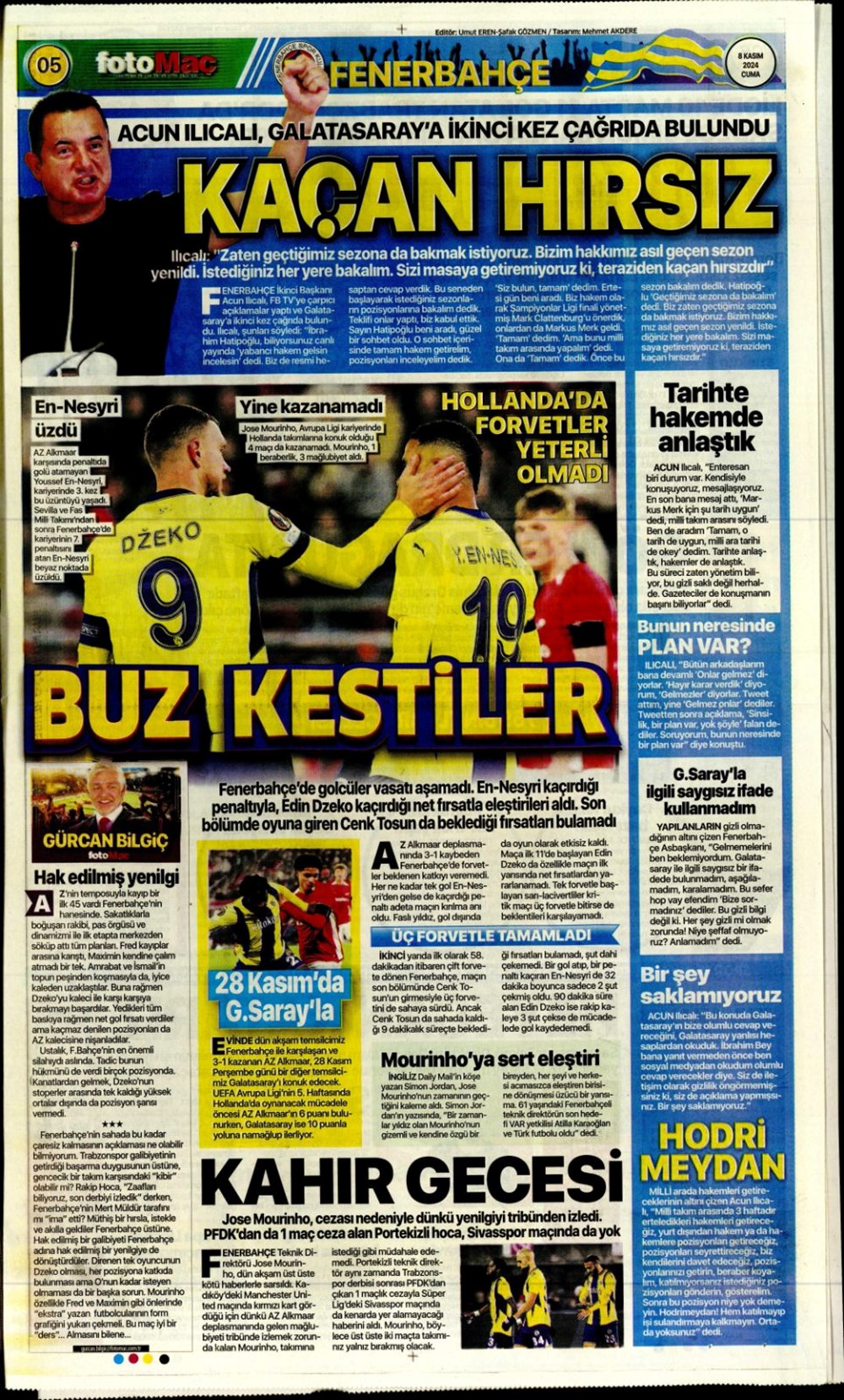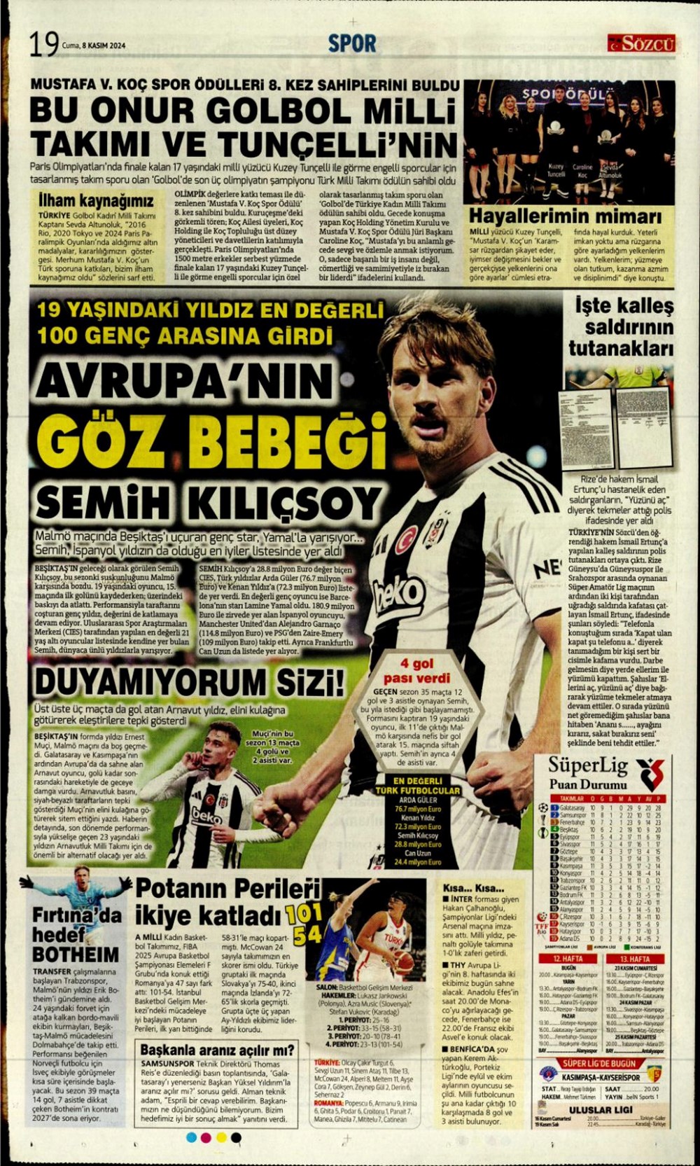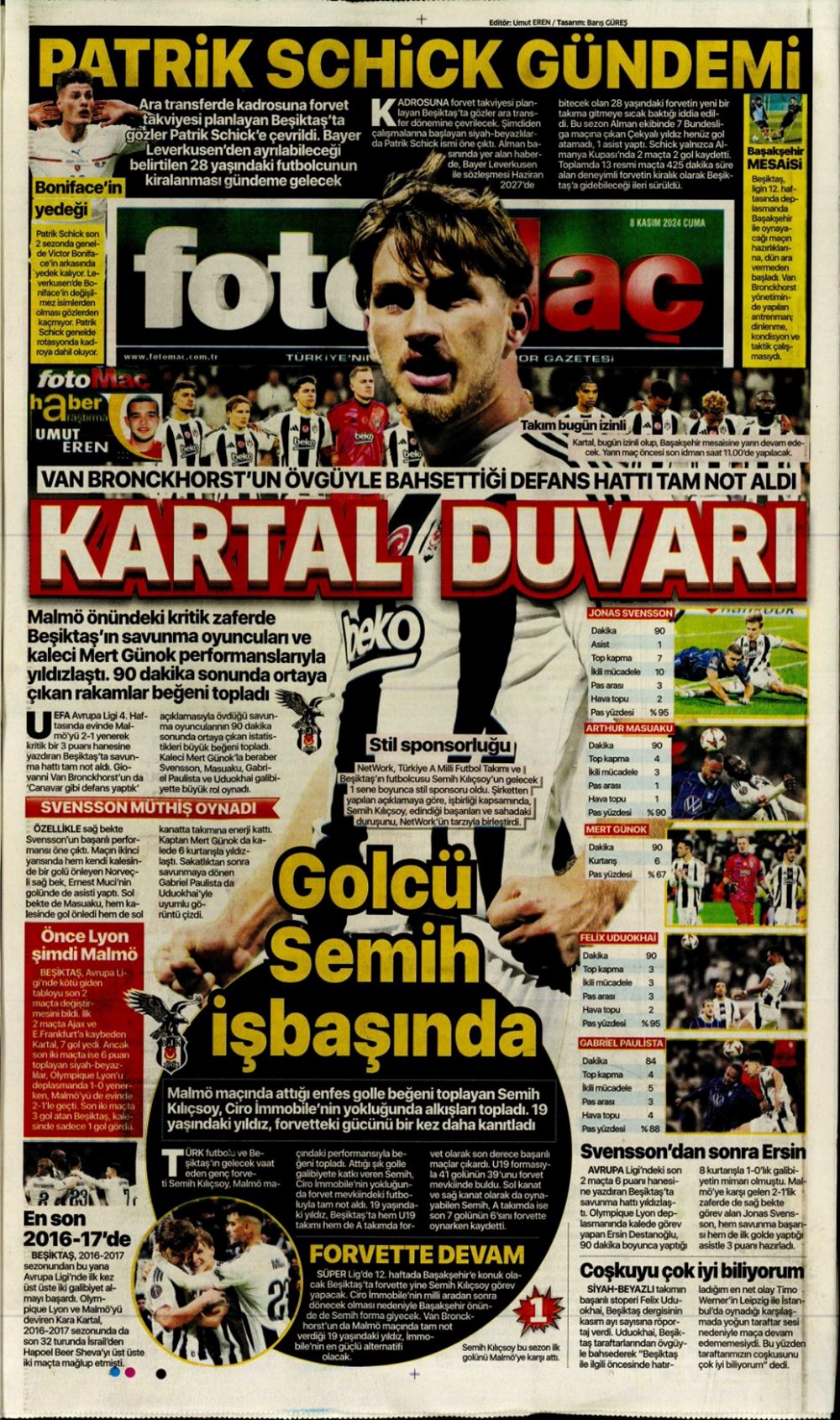 “Aslan üzere zafer” (8 Kasım 2024 spor manşetleri)