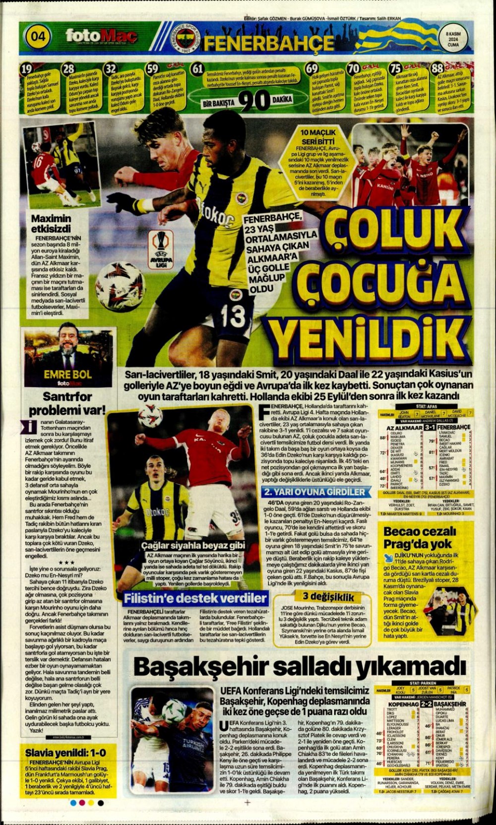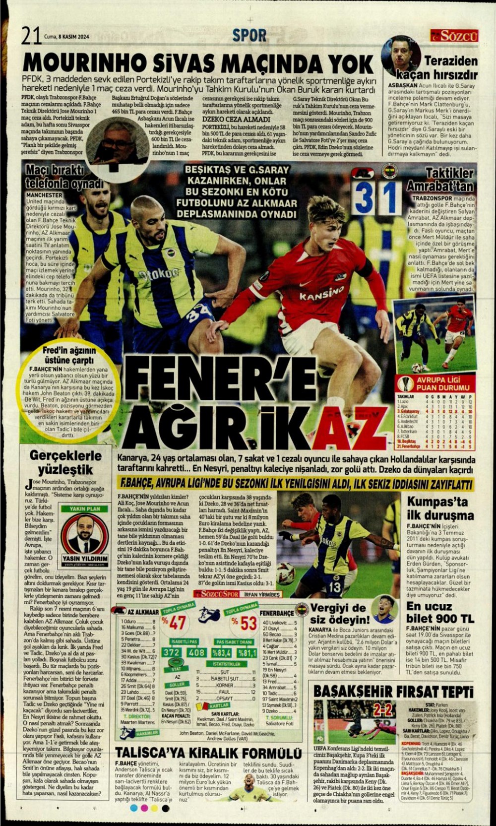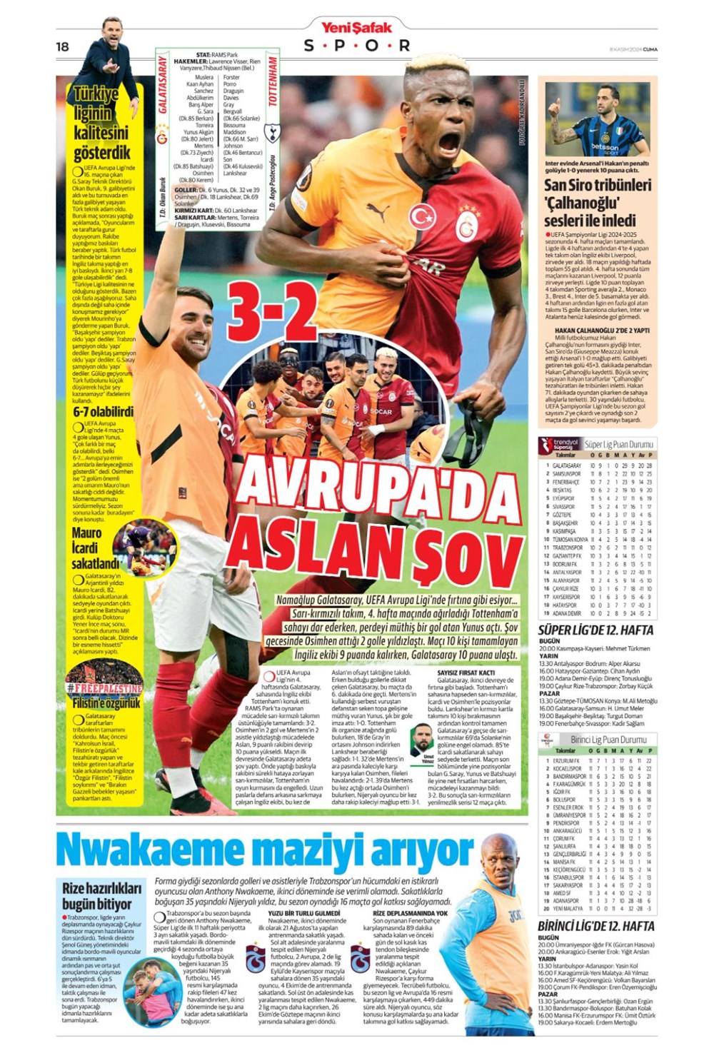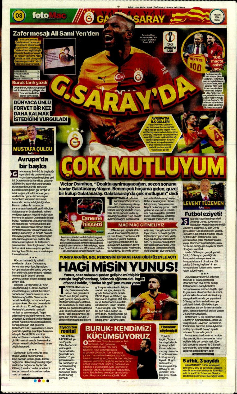 “Aslan üzere zafer” (8 Kasım 2024 spor manşetleri)