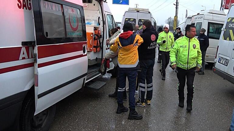 Arkadan gelen Yakup Aktaş’ın kullandığı 81 S 1219 plakalı servis minibüsü ile Recep Aktaş yönetimindeki 81 ABS 264 plakalı servis minibüsü de birbirlerine çarptı. Kazada minibüslerdeki 15 tekstil işçisi, yaralandı. İhbarla bölgeye gelen sağlık ekiplerince hastaneye kaldırılan yaralıların sağlık durumunun iyi olduğu belirtildi. Kazaya ilişkin soruşturma başlatıldı.