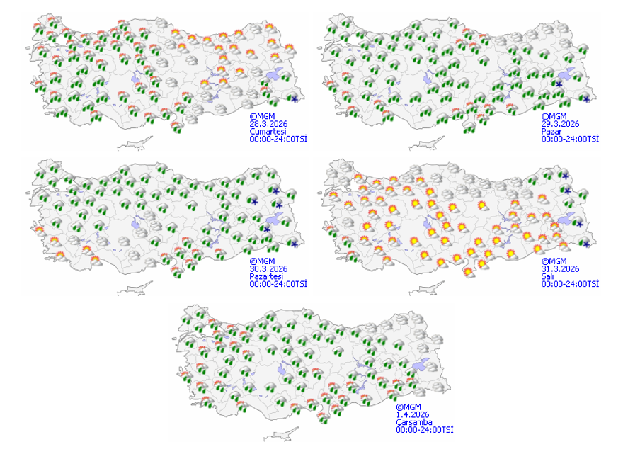 Yağışların, Ege ve Batı Akdeniz ile İstanbul, Balıkesir, Çanakkale, Yalova ve Bursa etraflarında kuvvetli, Aydın, Denizli ve Muğla etraflarında yer yer çok kuvvetli ve şiddetli olması bekleniyor.