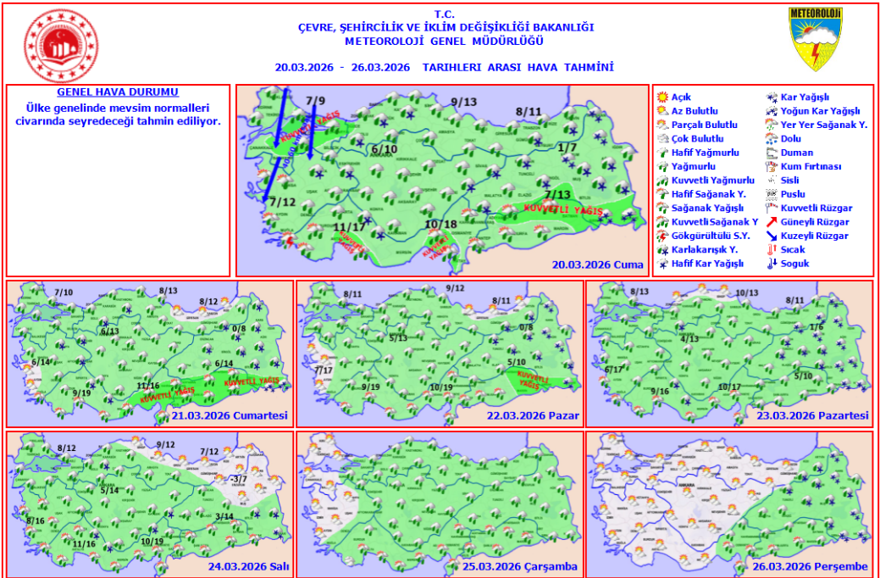 Meteorooji tarafından paylaşılan 7 günlük rapora nazaran, yağışlı hava haftaya Perşembe gününe kadar tüm yurtta tesirini sürdürecek.