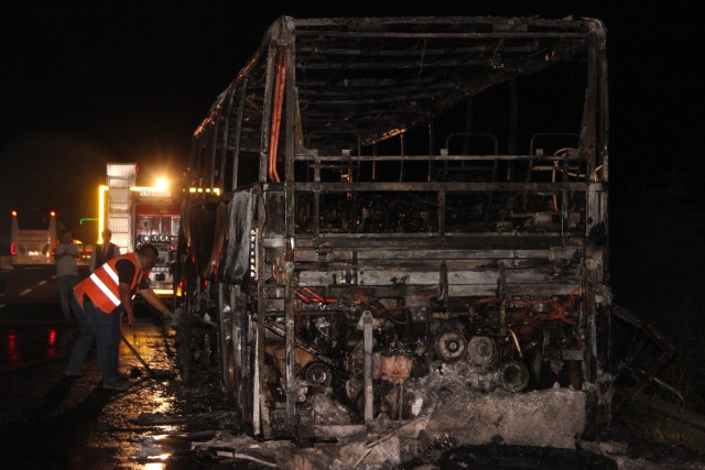 Alınan bilgiye göre, Isparta’dan 34 yolcusuyla İstanbul’a doğru hareket eden Zeki Aydın yönetimindeki 42 BDS 05 plakalı yolcu otobüsü, Eskişehir-Ankara karayolunun 20. kilometresinde henüz belirlenemeyen bir nedenle alev aldı. Motor bölümünden başlayan yangını fark eden otobüs şoförü ve muavinler aracı durdurarak yolcuları indirdi.