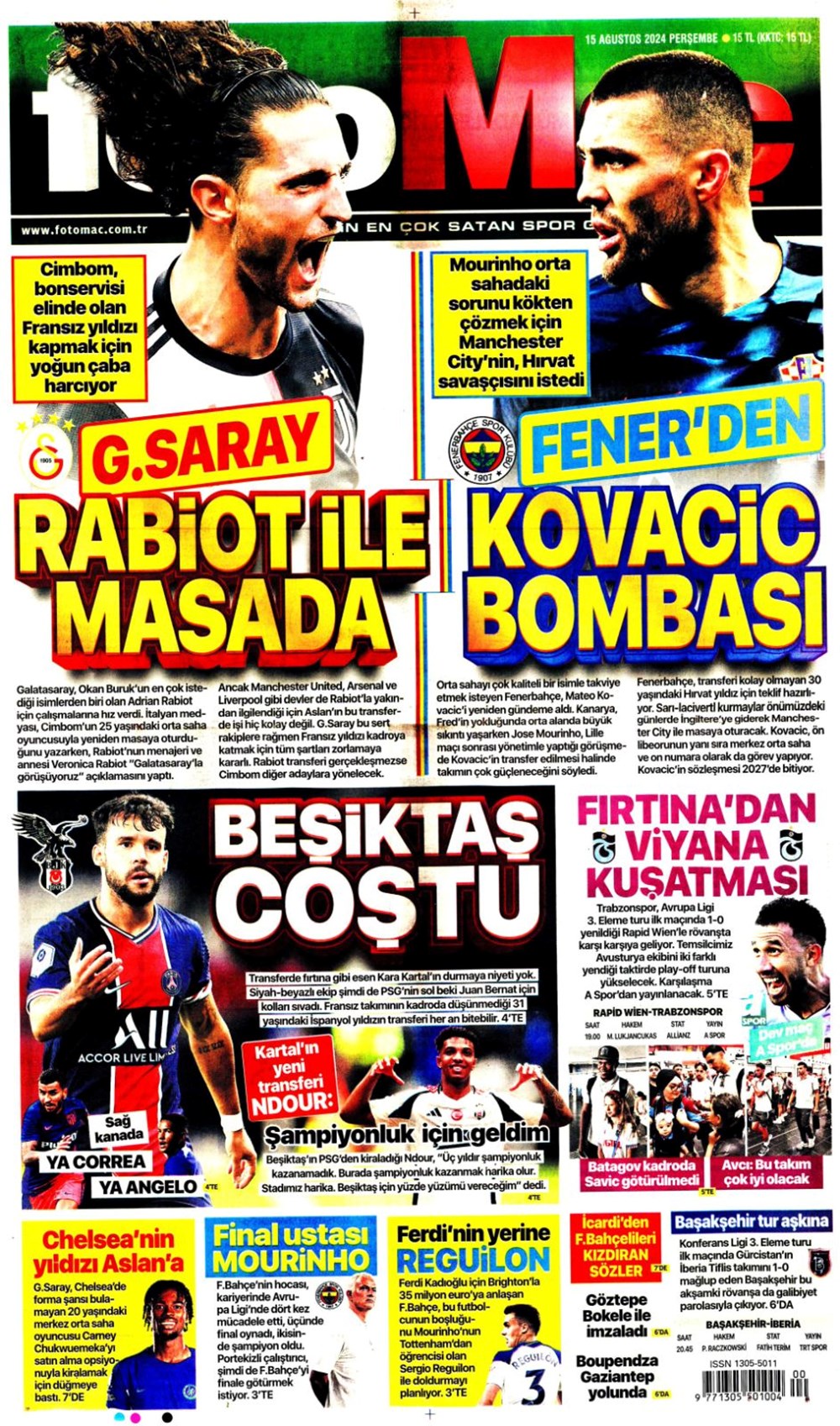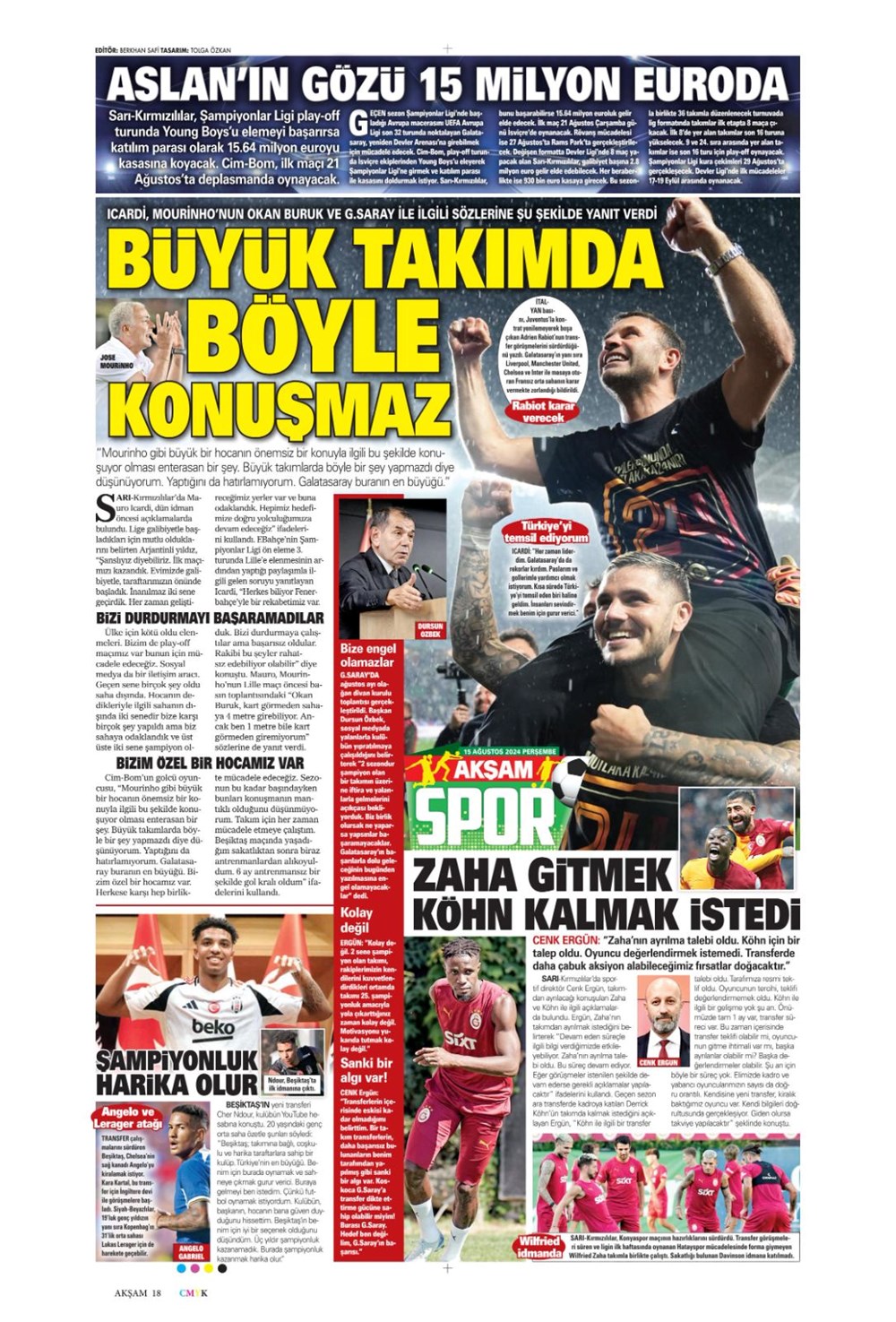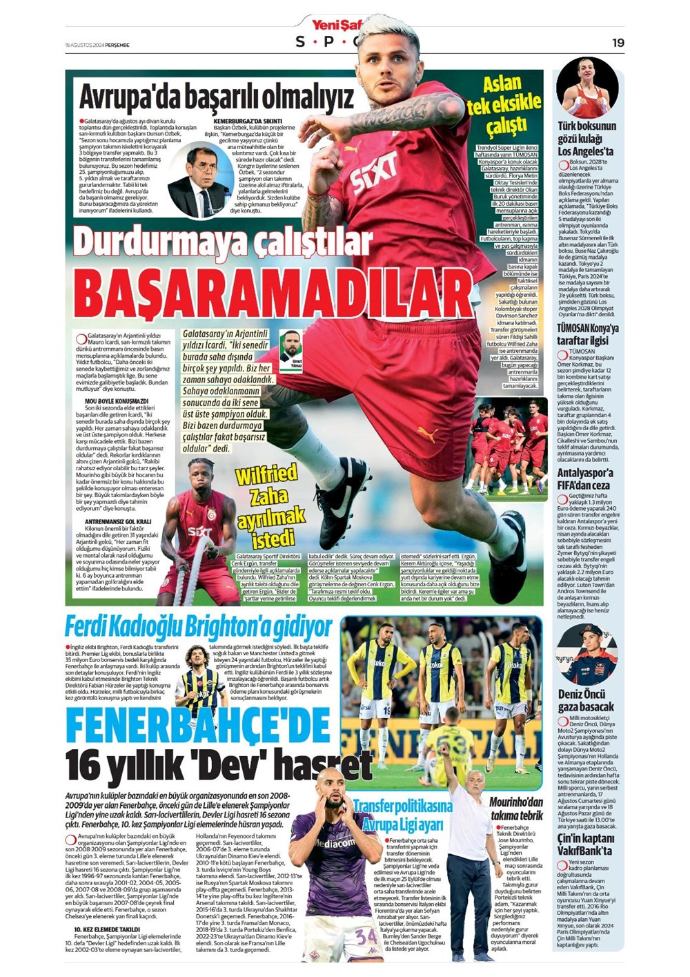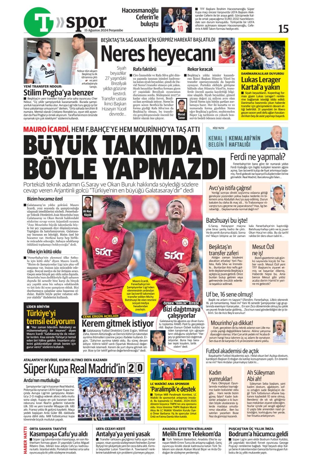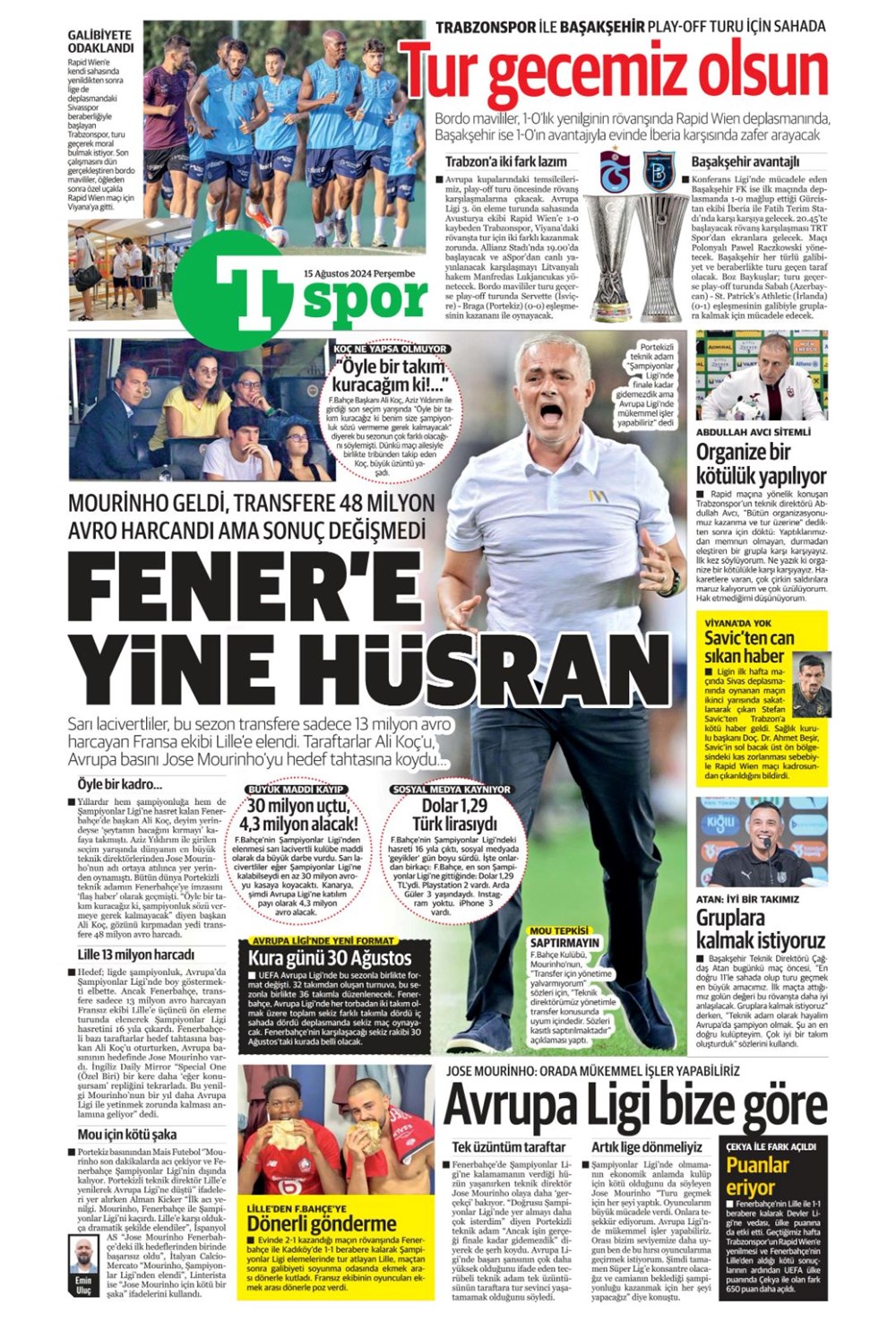 “Devler Ligi elden kaçtı” (14 Ağustos 2024 spor manşetleri)