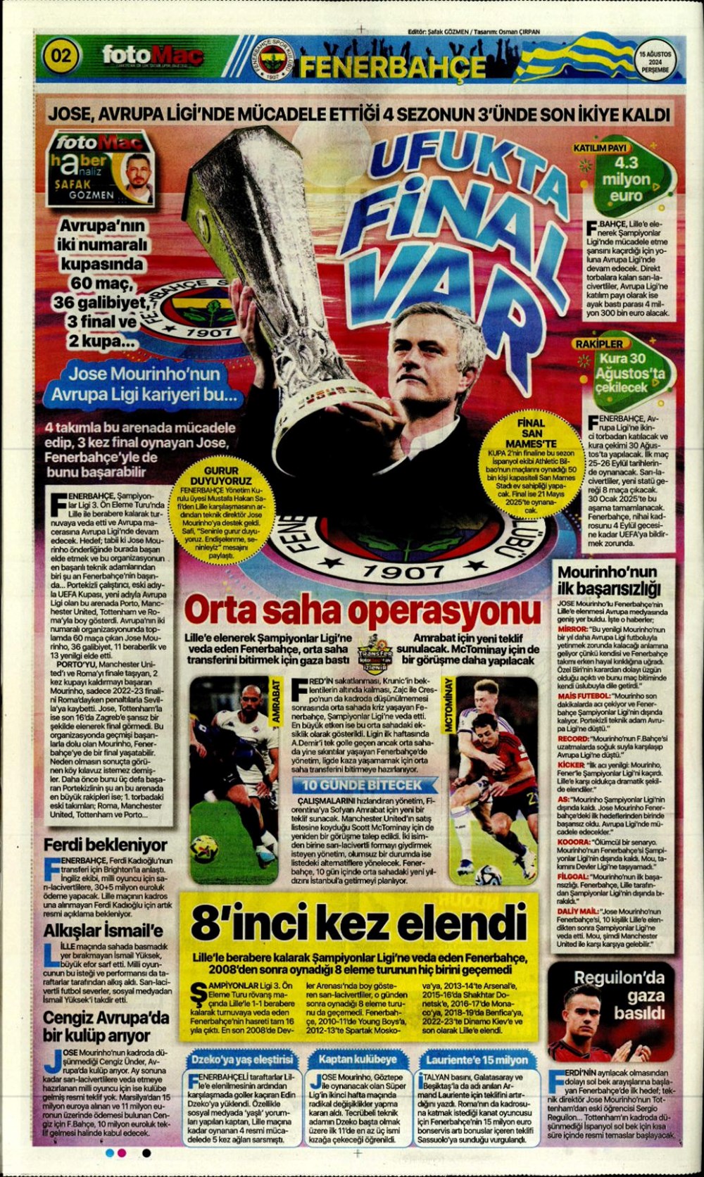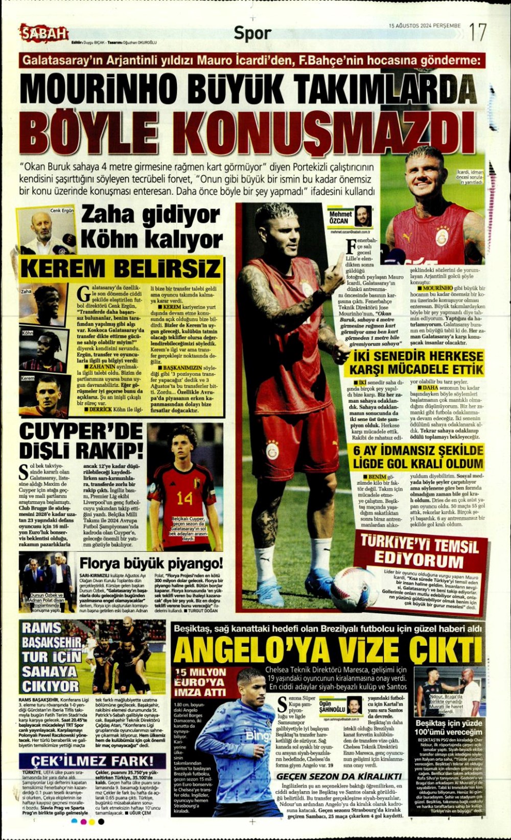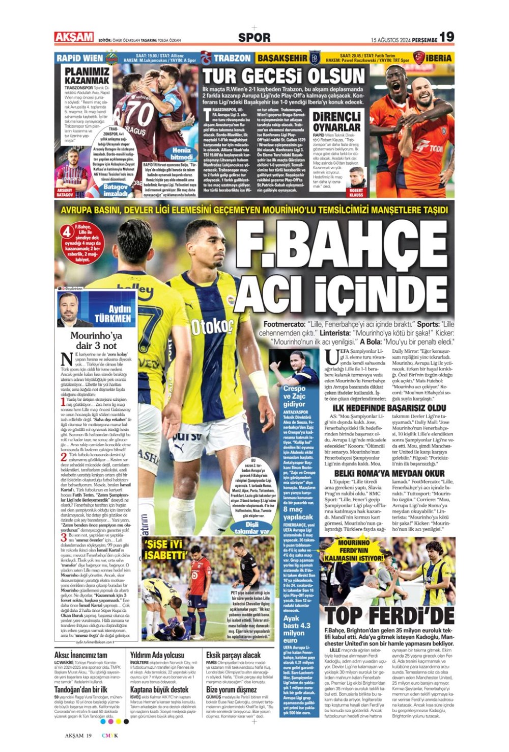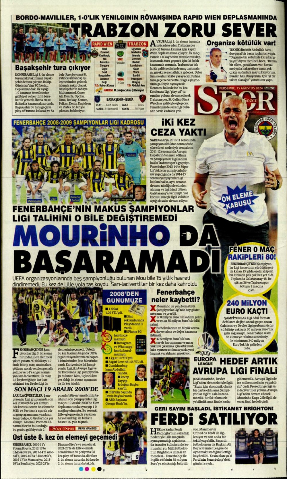 “Devler Ligi elden kaçtı” (14 Ağustos 2024 spor manşetleri)
