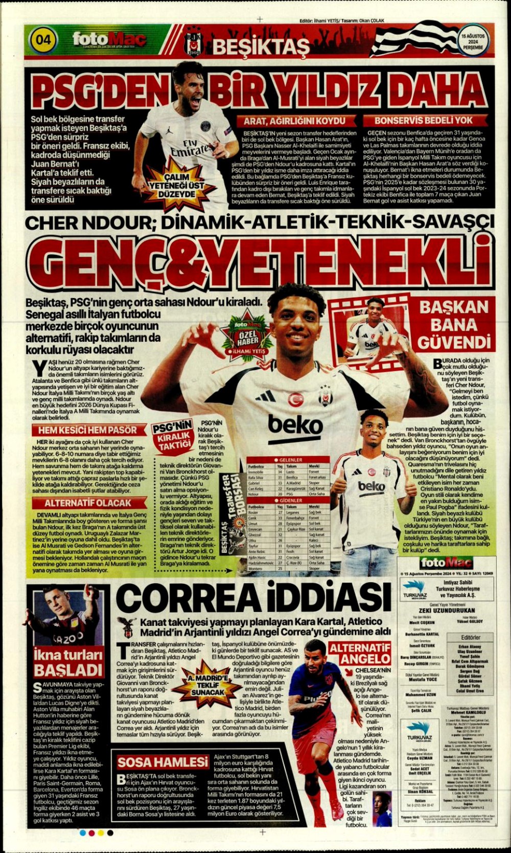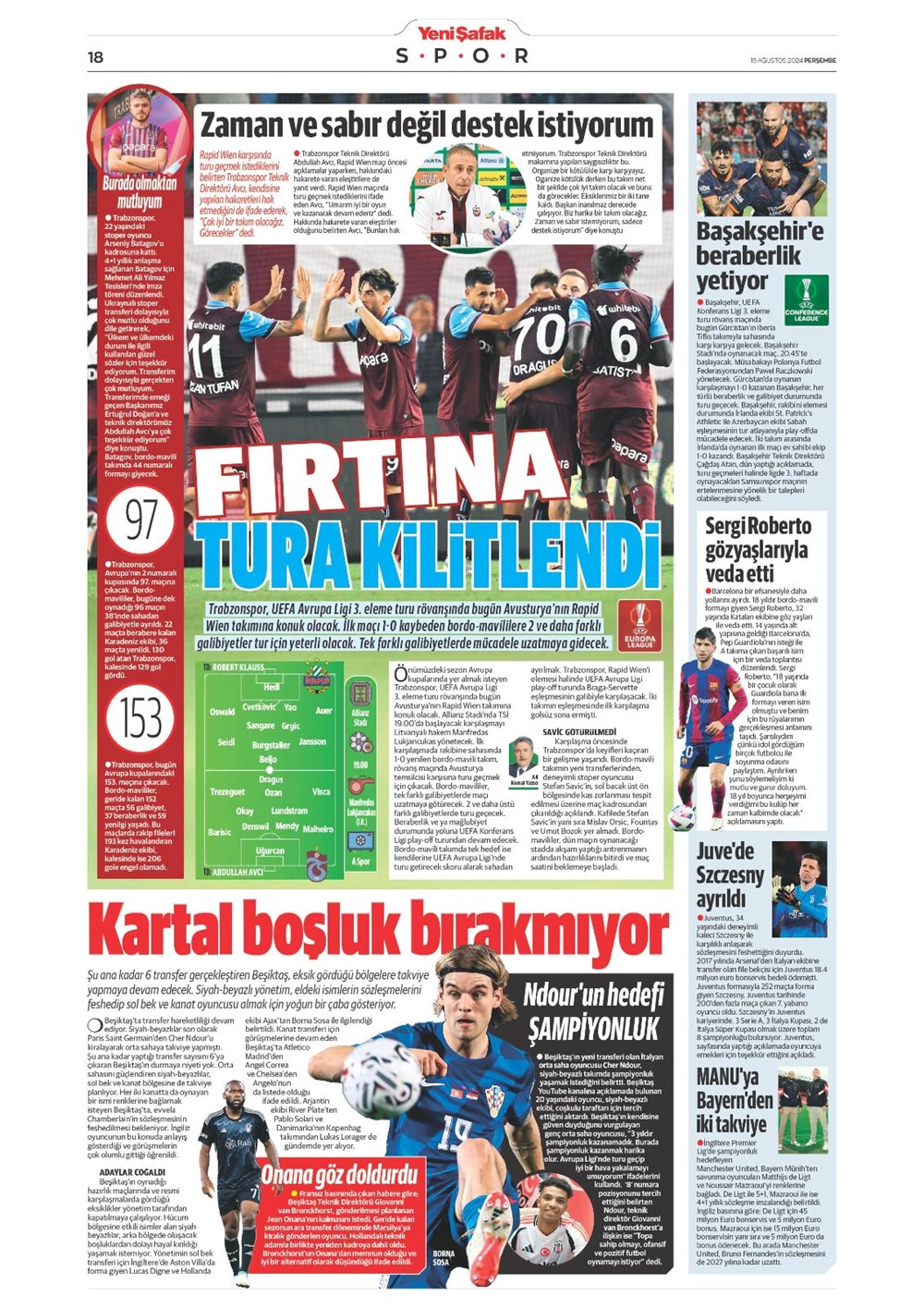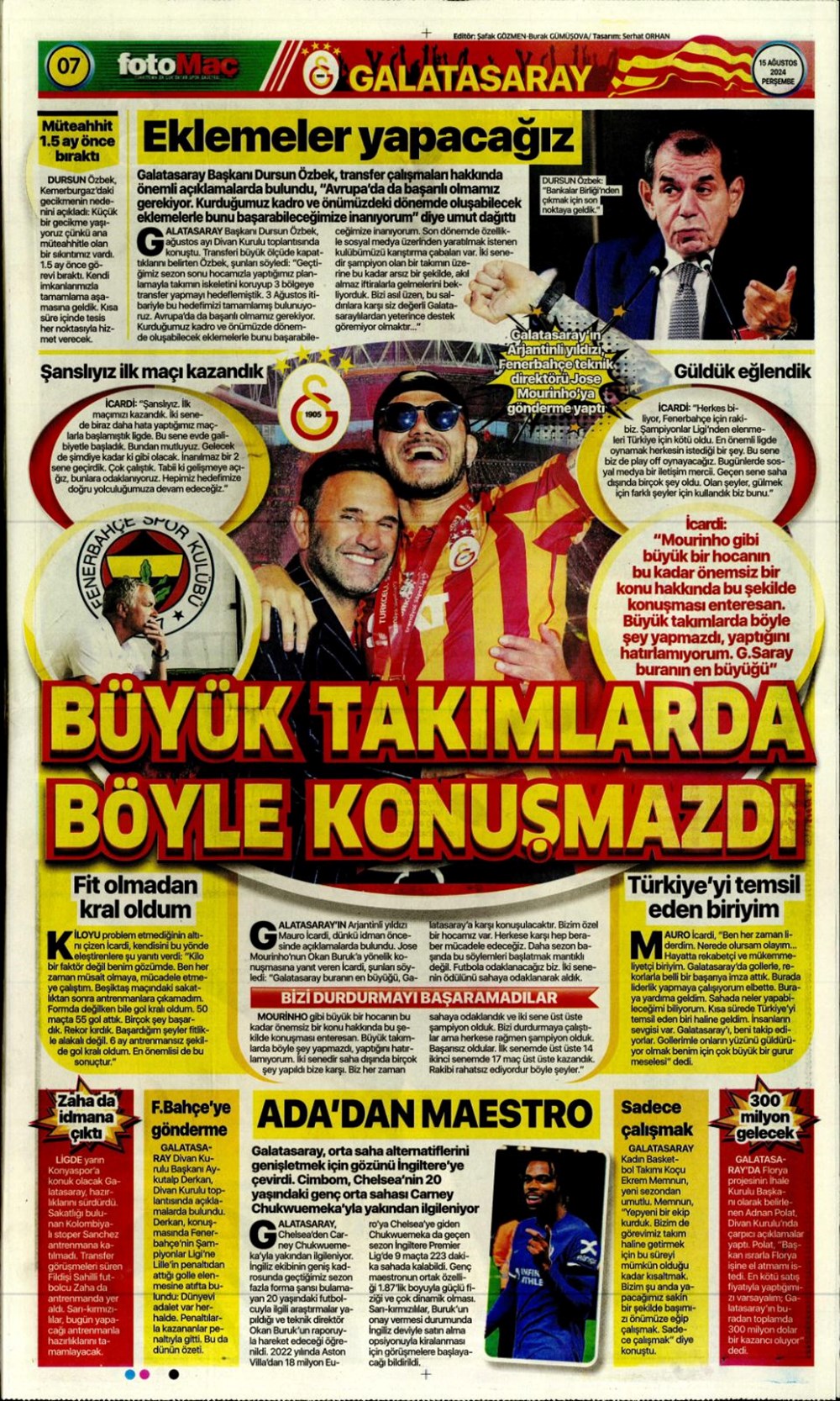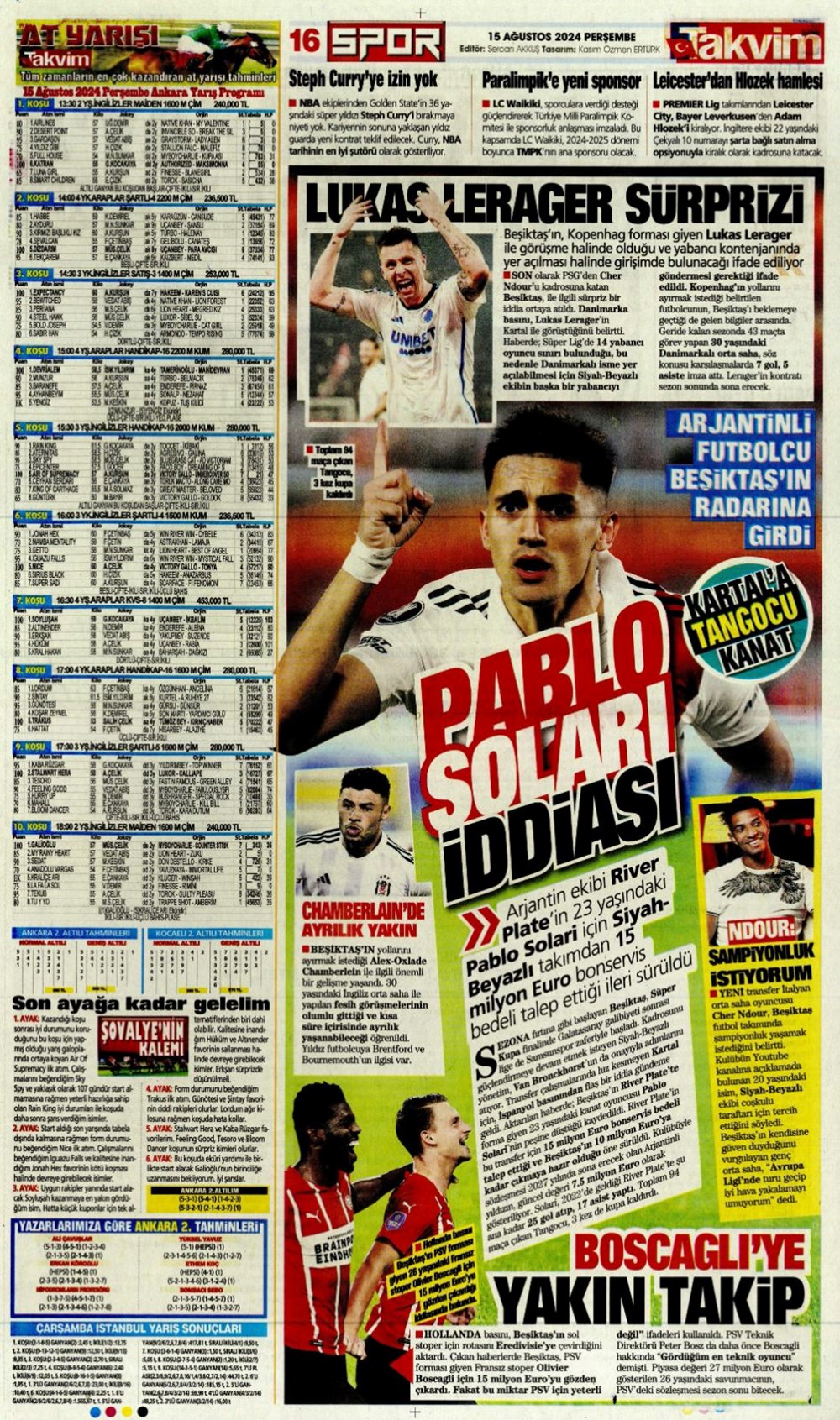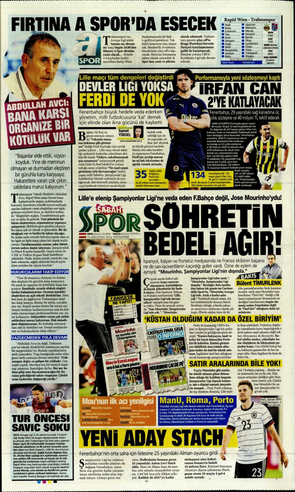 “Devler Ligi elden kaçtı” (14 Ağustos 2024 spor manşetleri)