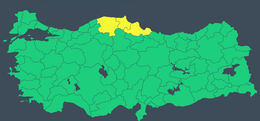 Rüzgarın kuzey istikametlerden, Batı Karadeniz kıyıları ile Batı Akdeniz’de yer yer kuvvetli (50-70 kilometre/saat) eseceği varsayım ediliyor. MGM Kastamonu, Sinop ve Samsun için sarı kodlu fırtına uyarısı yayınladı.