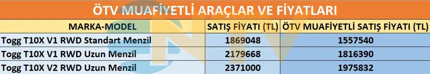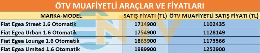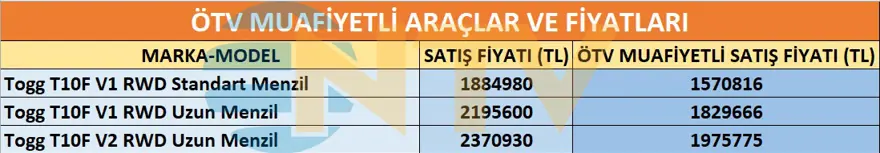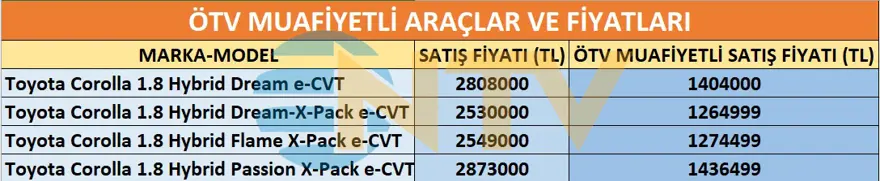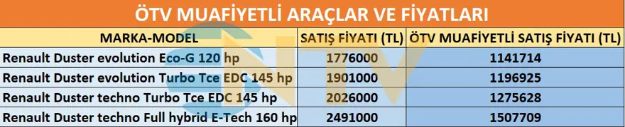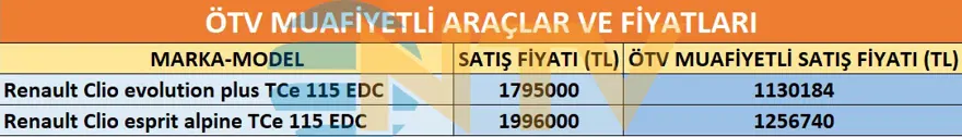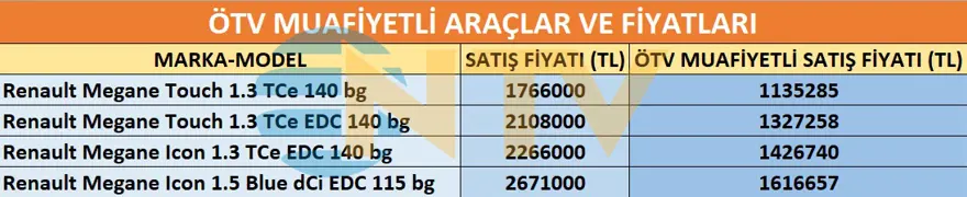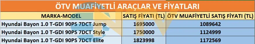 ÖTV’SİZ ALINACAK ARAÇLARIN TAM LİSTESİ VE FİYATLARI