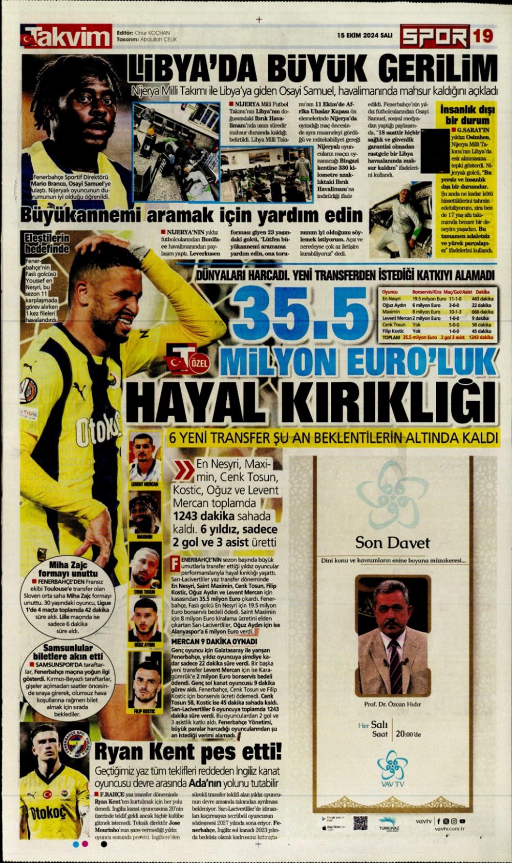 “Eski beğenilen Casemiro tekrar gündemde” (14 Ekim 2024 spor manşetleri)