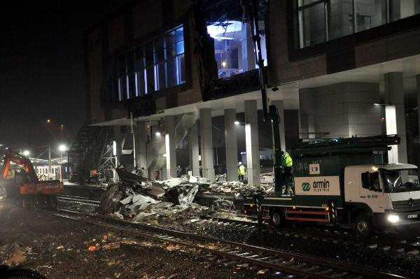 Tren raylarını bir an önce kullanıma açmak için uğraş veren itfaiye ve TCDD ekipleri, çöken üst geçidi kaldırdıktan sonra demir yığınına dönen vagonları da kaldırdı. Kaldırma çalışmasının sabaha kadar tamamlanması bekleniyor. – ANKARA