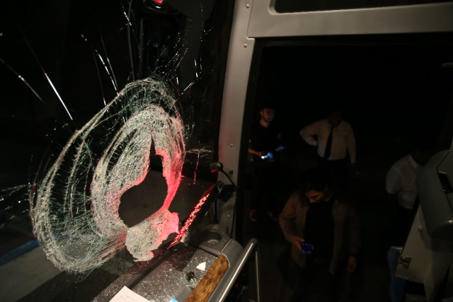 Yolcu otobüsüne taşlı saldırı… Hareket halindeki yolcu otobüsüne atılan kaya parçası muavin koltuğuna saplandı